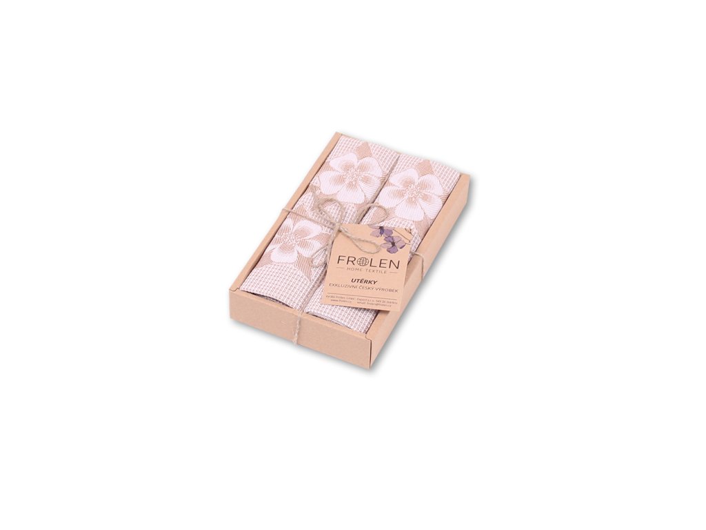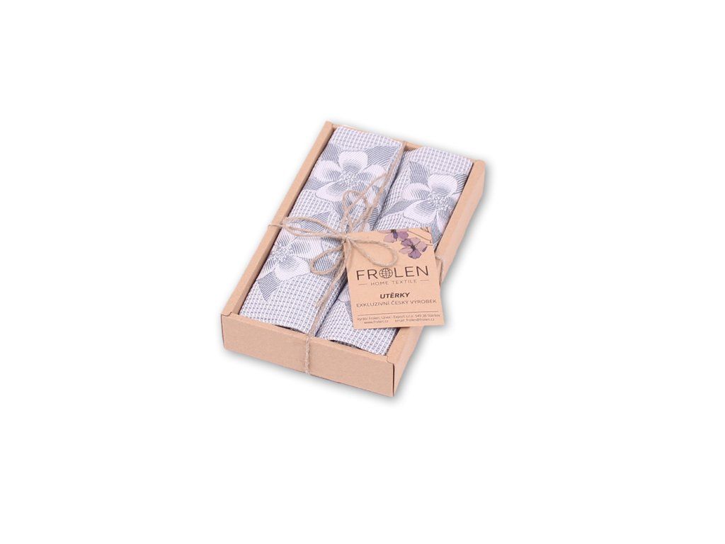 Balení obsahuje 2ks kvalitní žakársky tkané utěrky. Jsme tkalcovna s vlastní šicí dílnou, balením a expedicí, proto nás neváhejte kontaktovat s požadavkem na jiné balení. Viz. položka vlastní dárkové balení v naší nabídce.