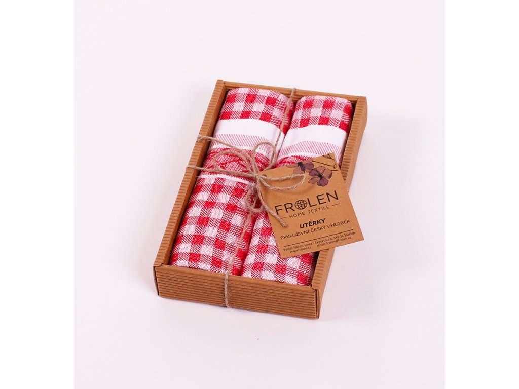 Dárkové balení vytkávané žakárské utěrky, tak jak ji znáte již z časů našich babiček. Utěrky nejsou potištěny, ale vzor je přímo vytkaný na našem žakárském tkalcovském stavu z předem obarvených přízí. Příze jsou tudíž kompletně probarvené a né pouze potištěné na povrchu. Tato složitá technika žakárské výroby umožňuje vytvoření nádherných, stálých vazebních vzorů, které Vám budou léta dělat radost.