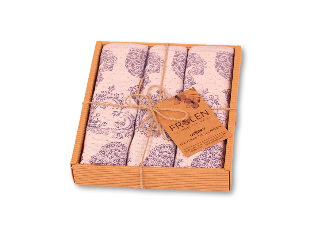Balení obsahuje 3ks kvalitní žakársky tkané utěrky. Jsme tkalcovna s vlastní šicí dílnou, balením a expedicí, proto nás neváhejte kontaktovat s požadavkem na jiné balení. Viz. položka vlastní dárkové balení v naší nabídce.