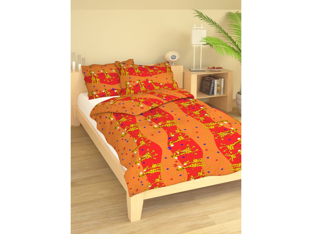 KREPOVÉ POVLEČENÍ ŽIRAFA ORANŽOVÉ (140x200 + 70x90)