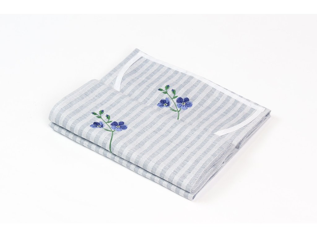 POLOLNĚNÁ ZÁSTĚRA + UTĚRKA S VÝŠIVKOU LNĚNÉ KYTIČKY - SÁČEK ŠEDÁ