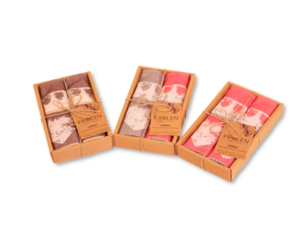 Balení obsahuje 2ks kvalitní žakársky tkané utěrky. Jsme tkalcovna s vlastní šicí dílnou, balením a expedicí, proto nás neváhejte kontaktovat s požadavkem na jiné balení. Viz. položka vlastní dárkové balení v naší nabídce.