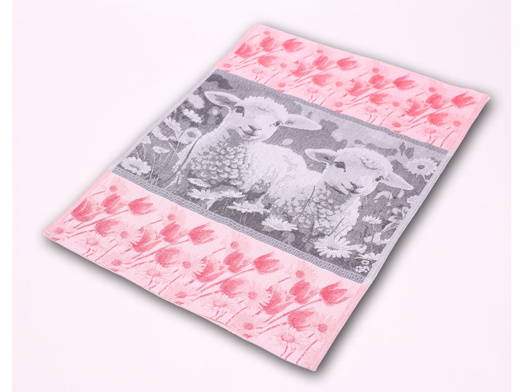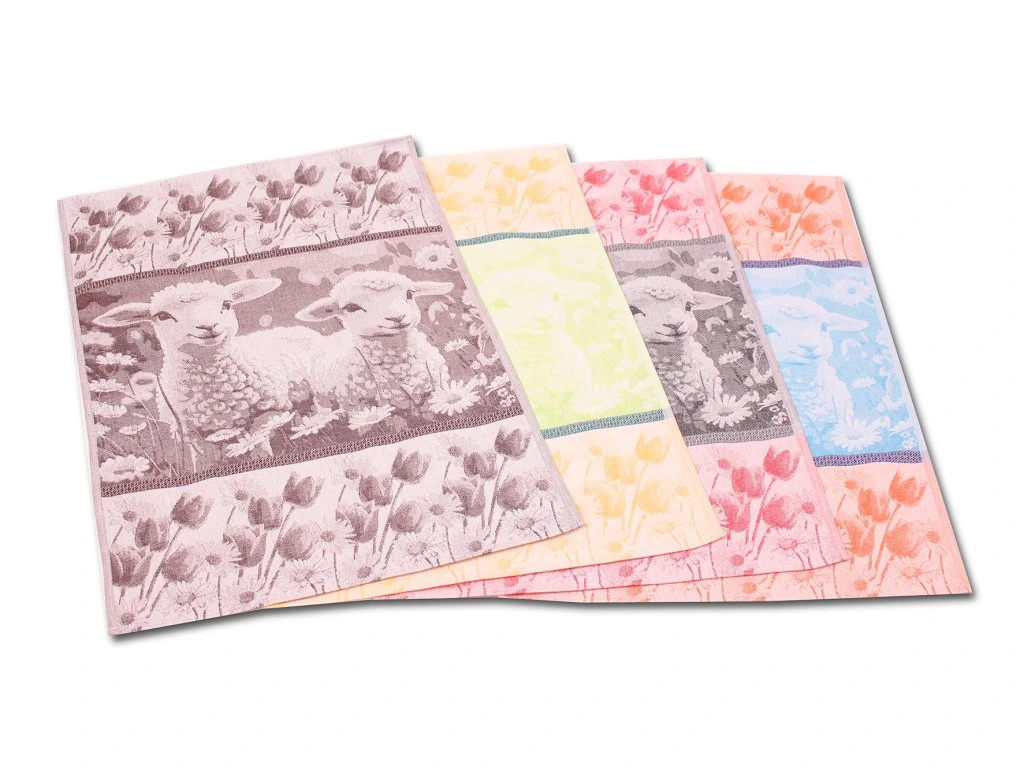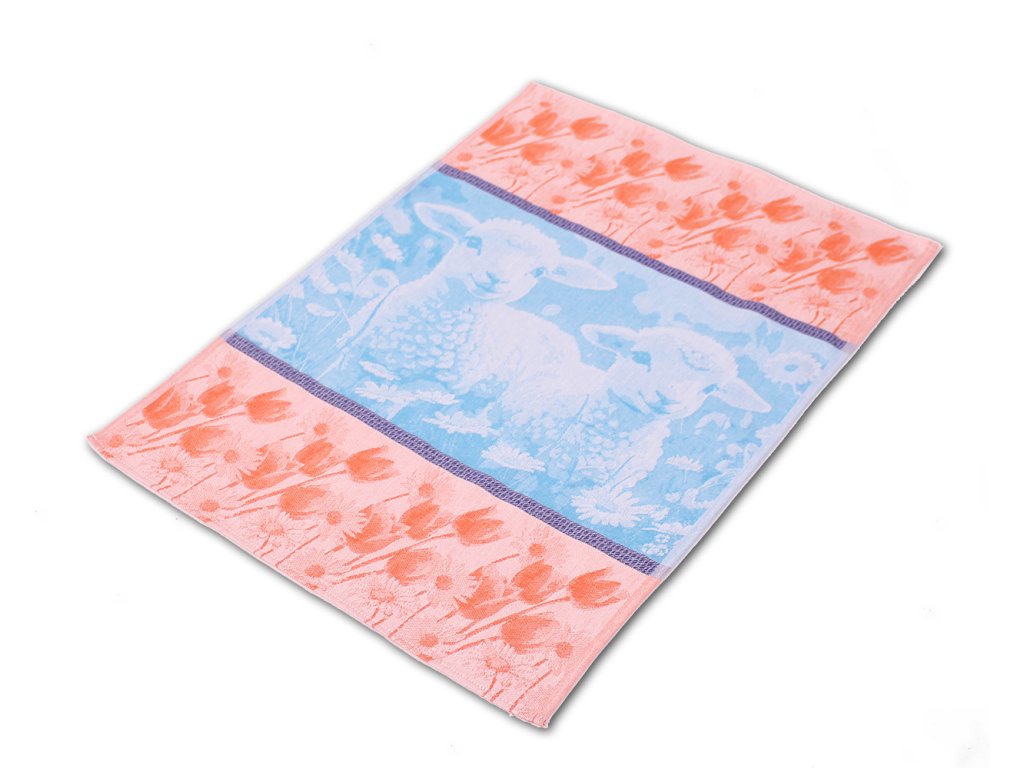 Bavlněná kuchyňská utěrka s velikonočním motivem ovečky, vysoká savost bavlny, rozměr 50x70cm, 100% bavlna.