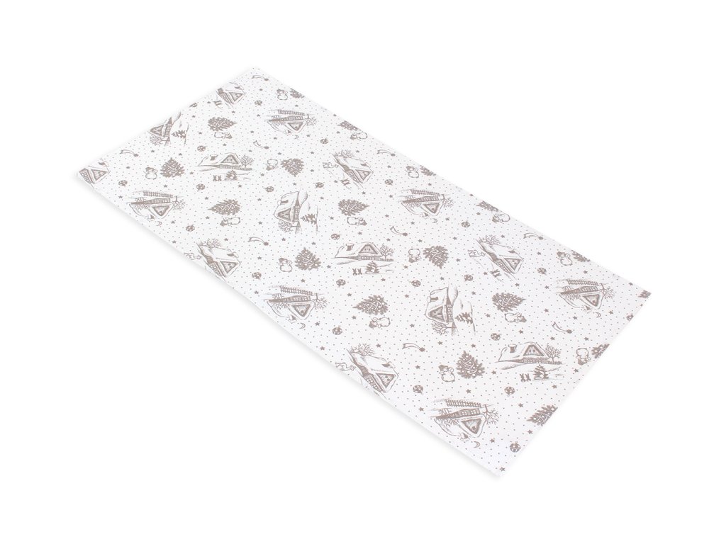 VÁNOČNÍ BĚHOUN 88x42 BÍLÝ METRÁŽ SNĚHULÁK A CHALOUPKY