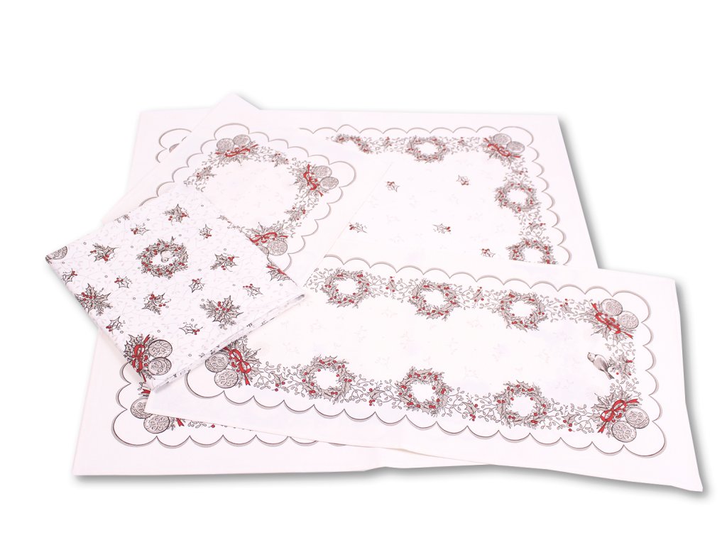 Běhoun je snadno pratelný a udrží si svůj tvar a barvy i po opakovaném praní. Skvěle se hodí pro vánoční stolování.