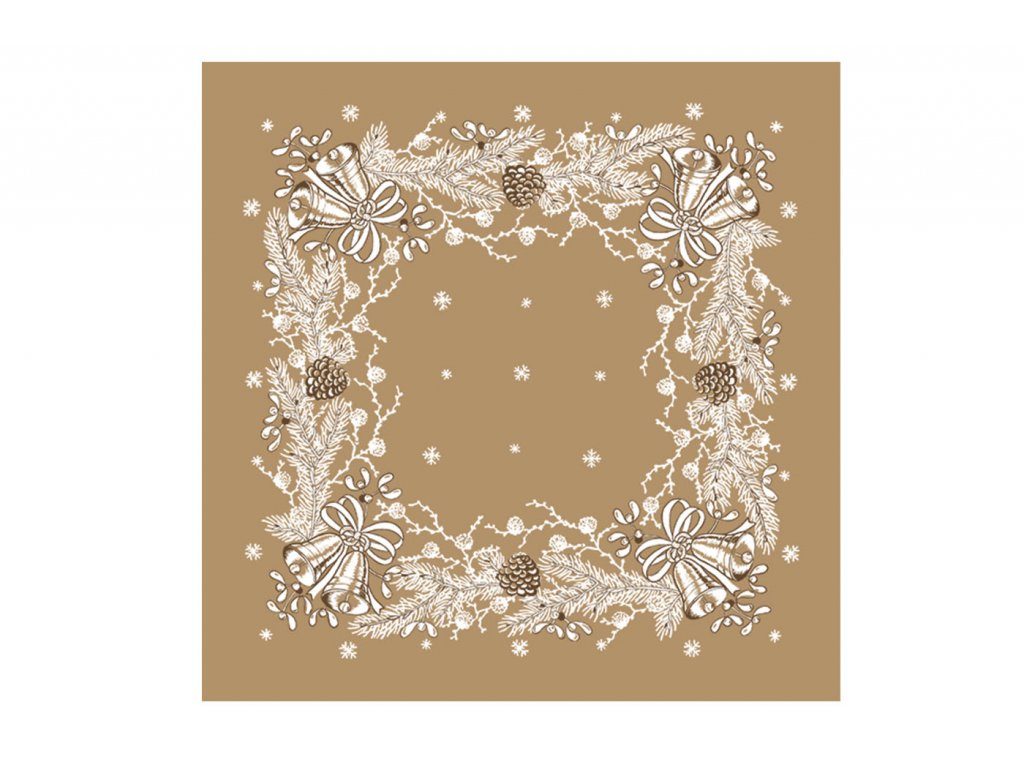 VÁNOČNÍ UBROUSEK 42x42 REŽNÝ ŠIŠKY A ZVONEČKY