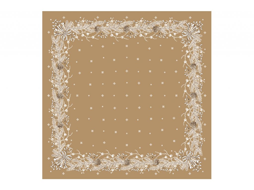 VÁNOČNÍ UBRUS 88x88 REŽNÝ ŠIŠKY A ZVONEČKY